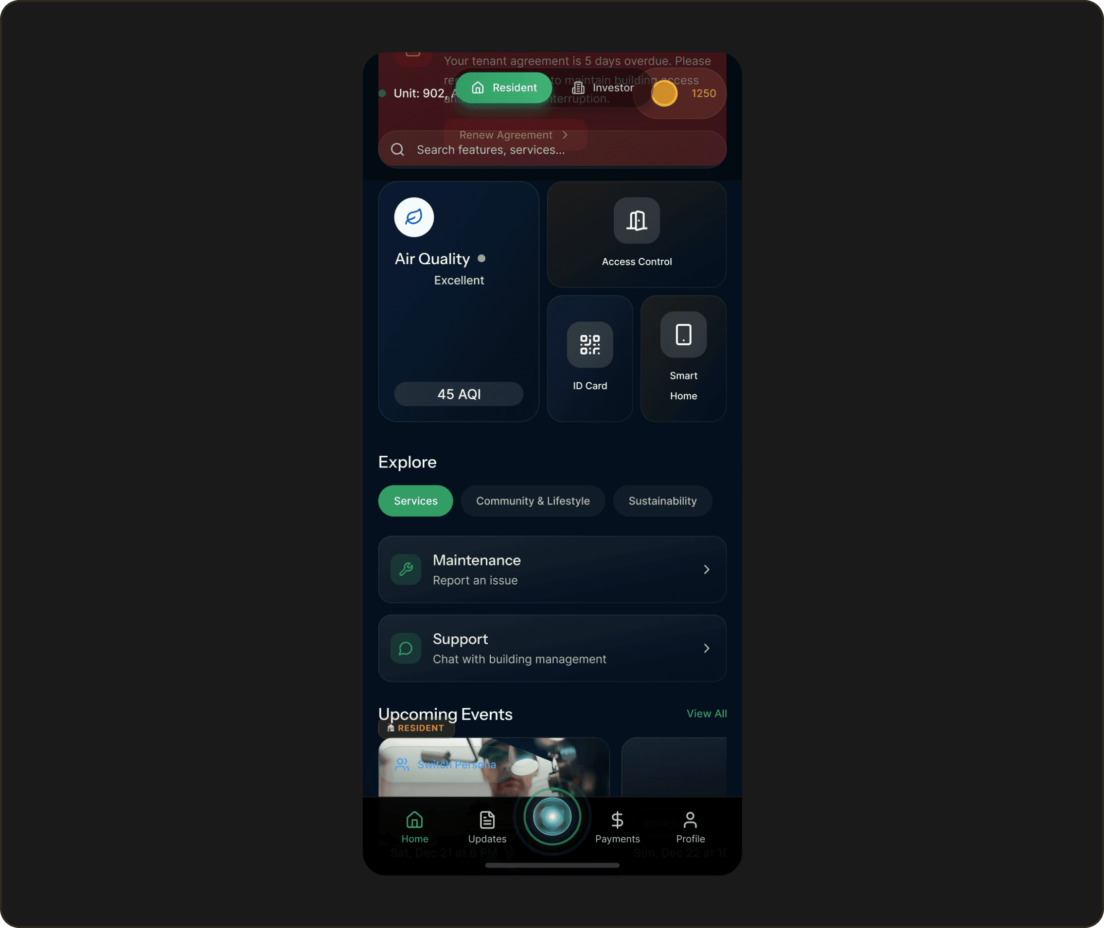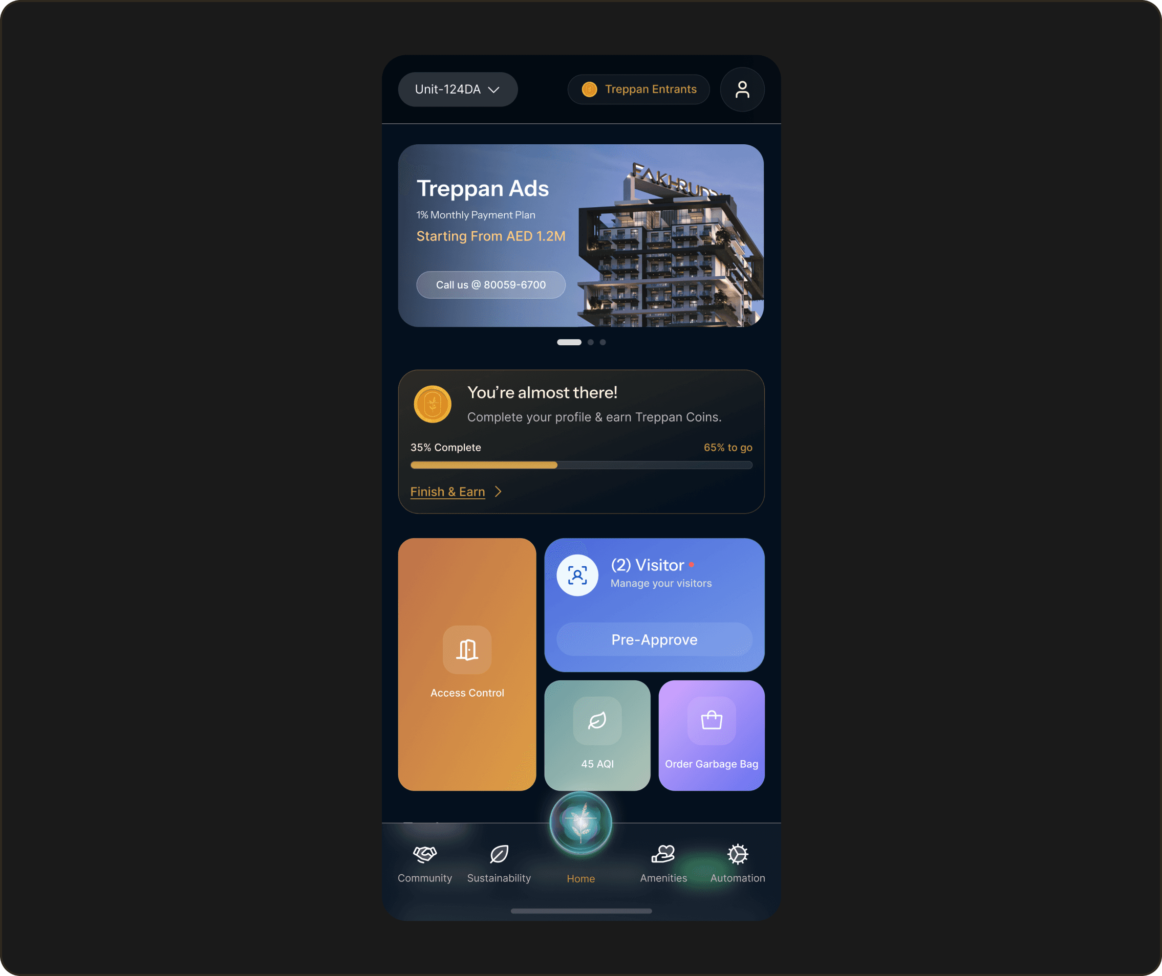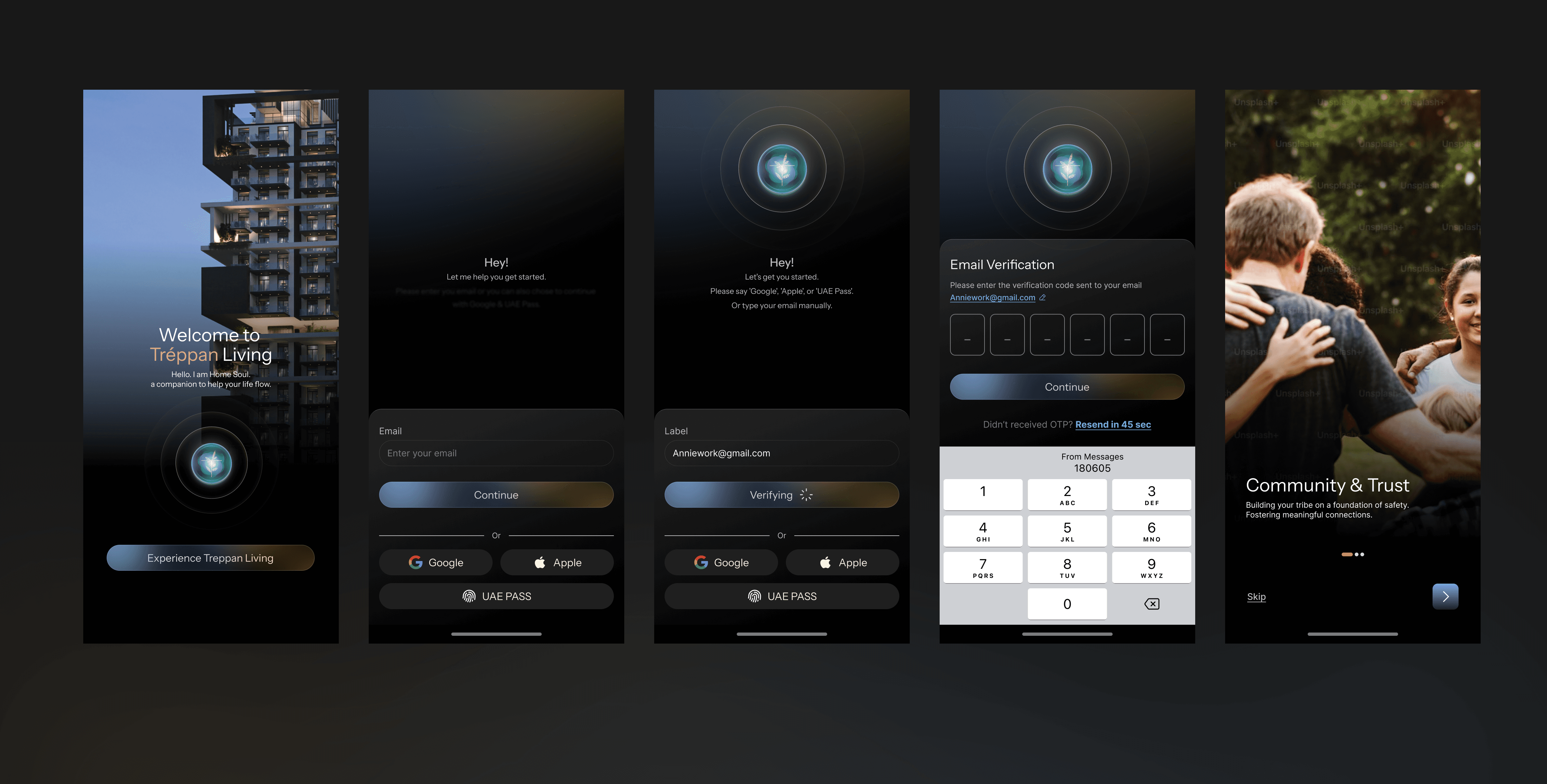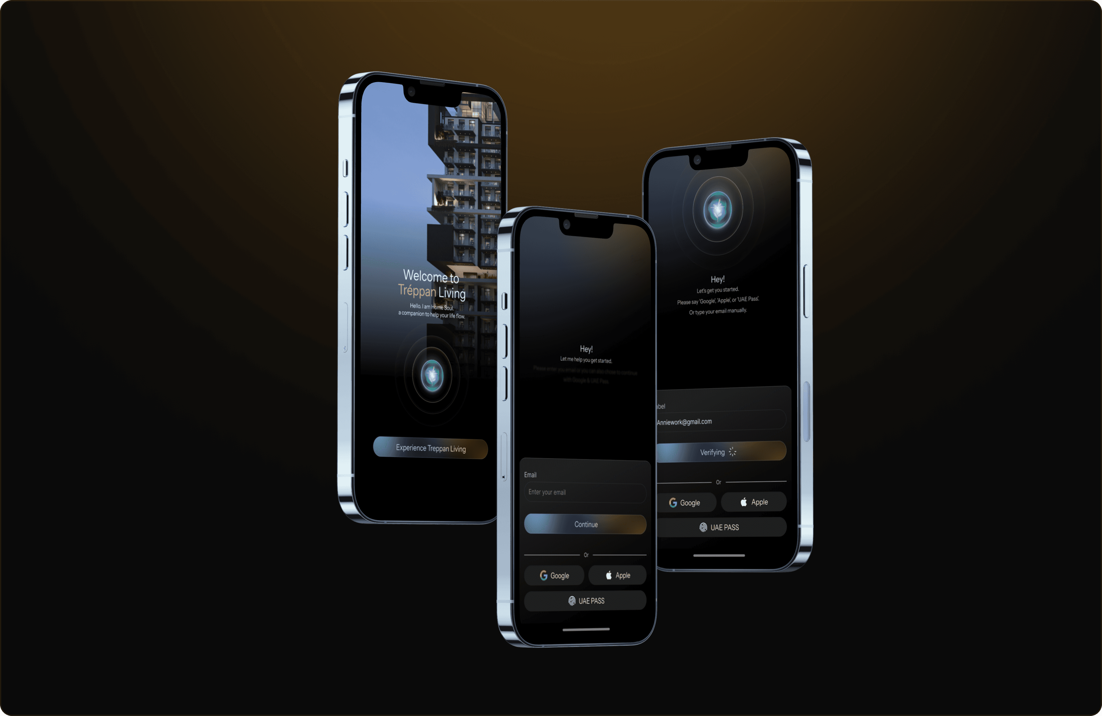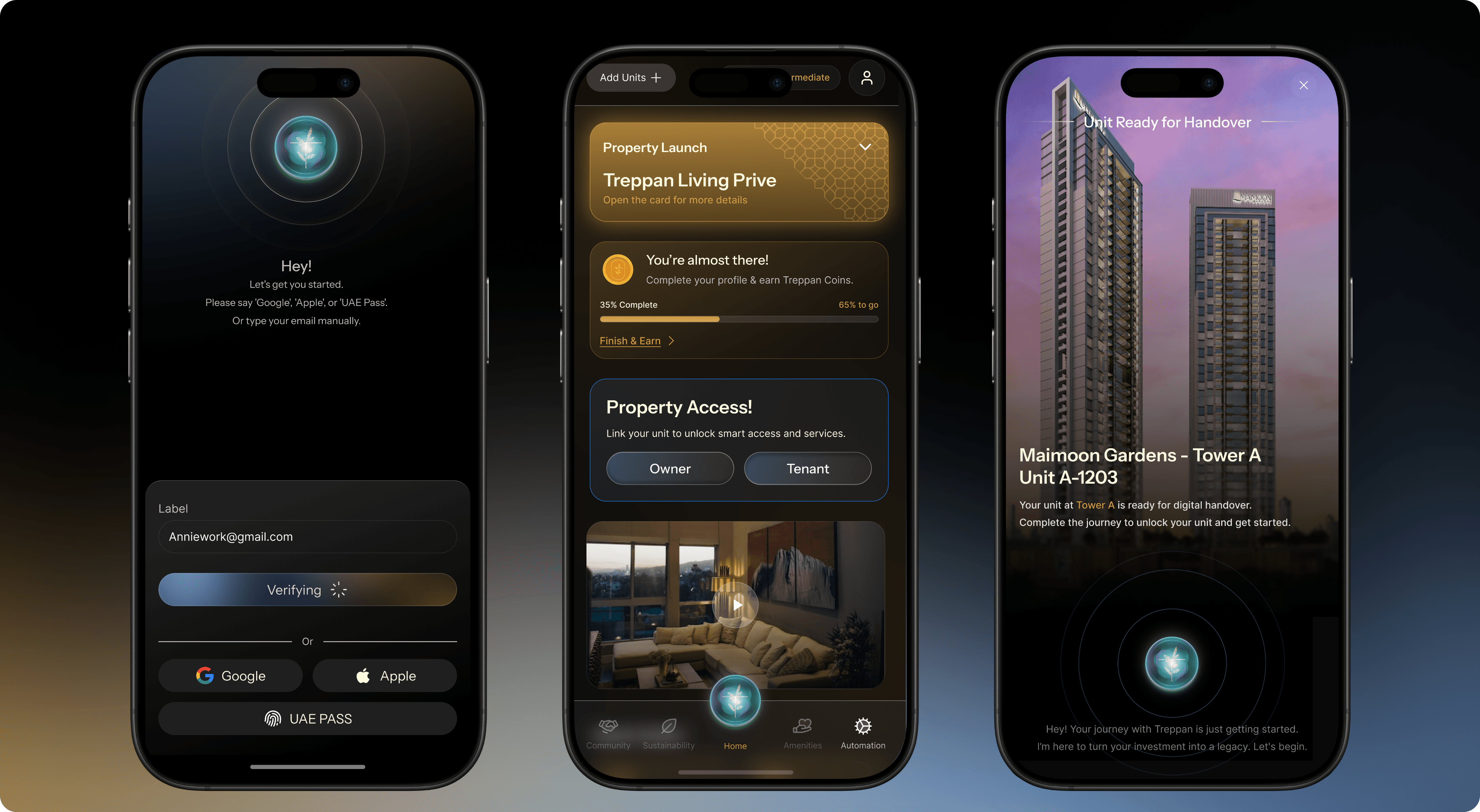because it's trendy. Not because every "premium" app does it. Dark because Treppan's identity lives in the mood of Dubai at night: the glow of the skyline, the warmth of gold against deep sky, the sense that something important is happening and you're part of it.